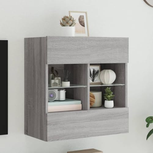 GeenYuu TV Wall Cabinet with LED Lights, Grey Sonoma Wood Material, 58.5 x 30 x 60.5 cm, Universal TV Stand, Wall Mounting