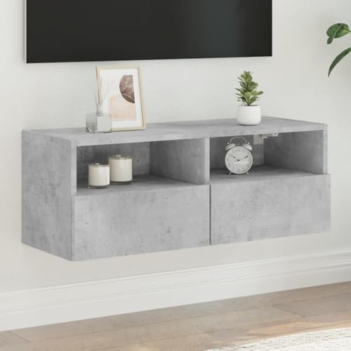 AJJHUUKI Entertainment Centres & TV Stands,TV Wall Cabinet with LED Lights Concrete Grey 60x35x31 cm
