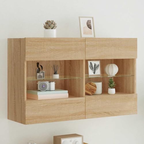 AJJHUUKI Entertainment Centres & TV Stands,TV Wall Cabinet with LED Lights Grey Sonoma 40x30x60.5 cm
