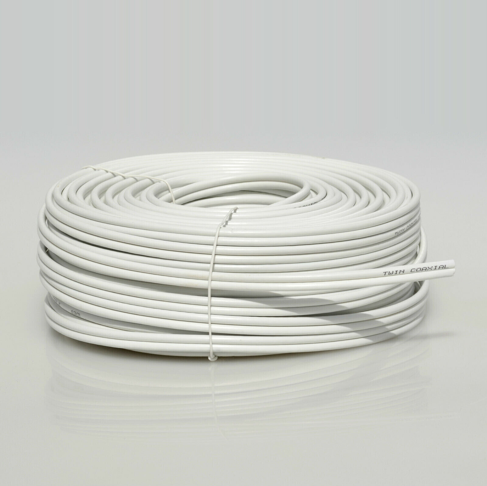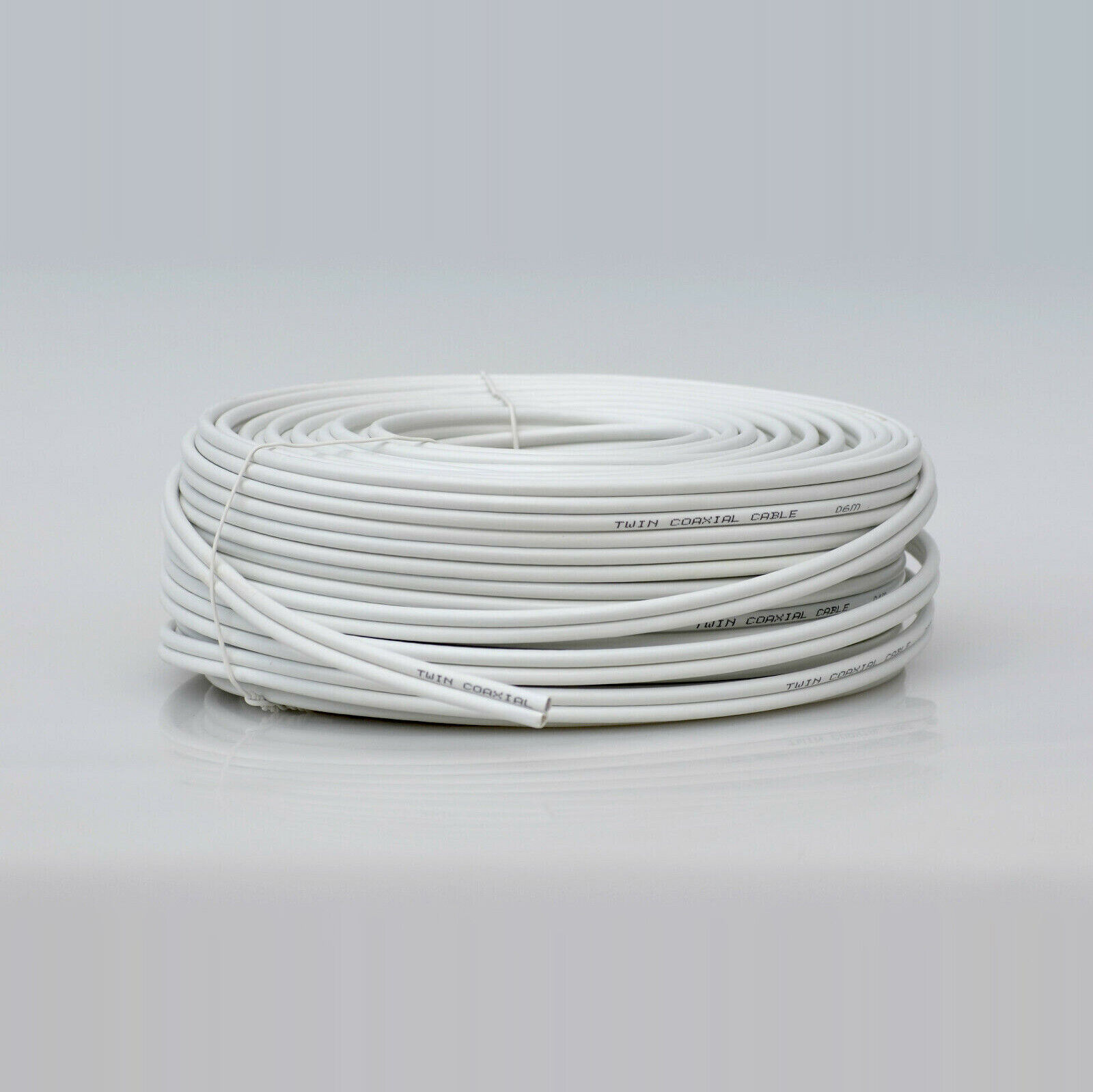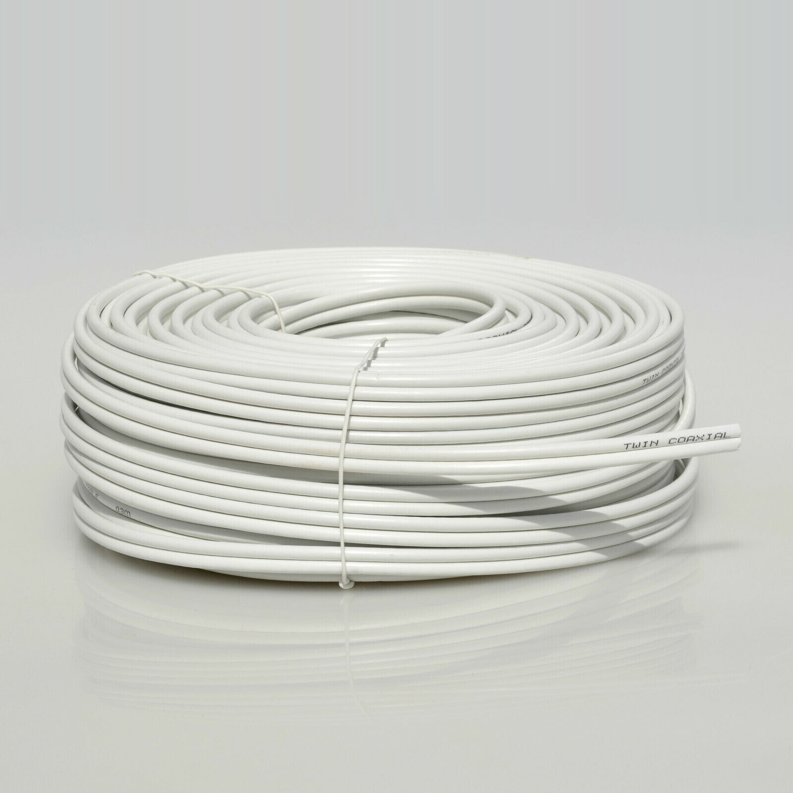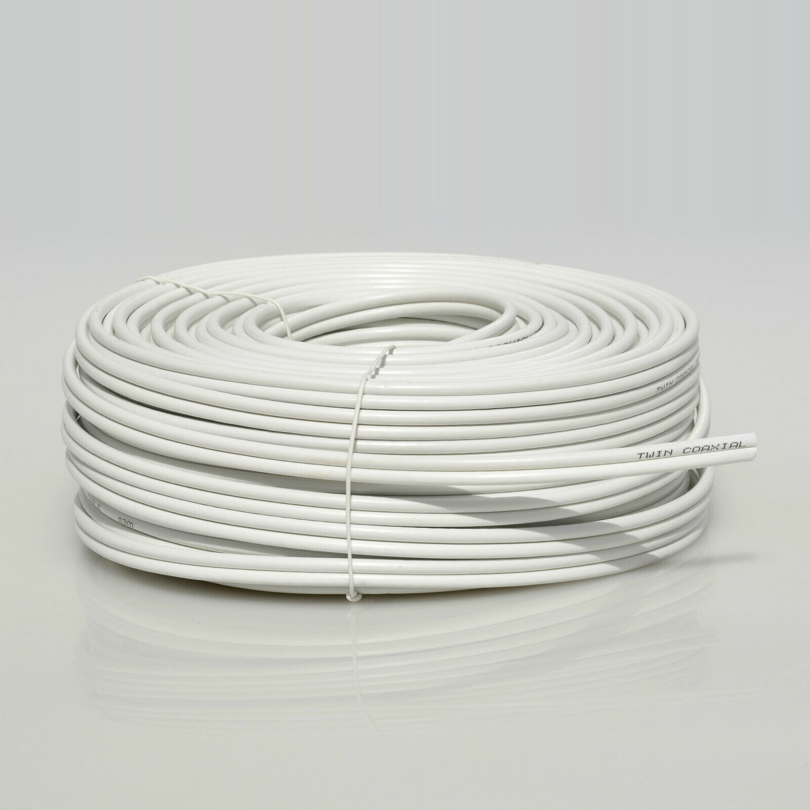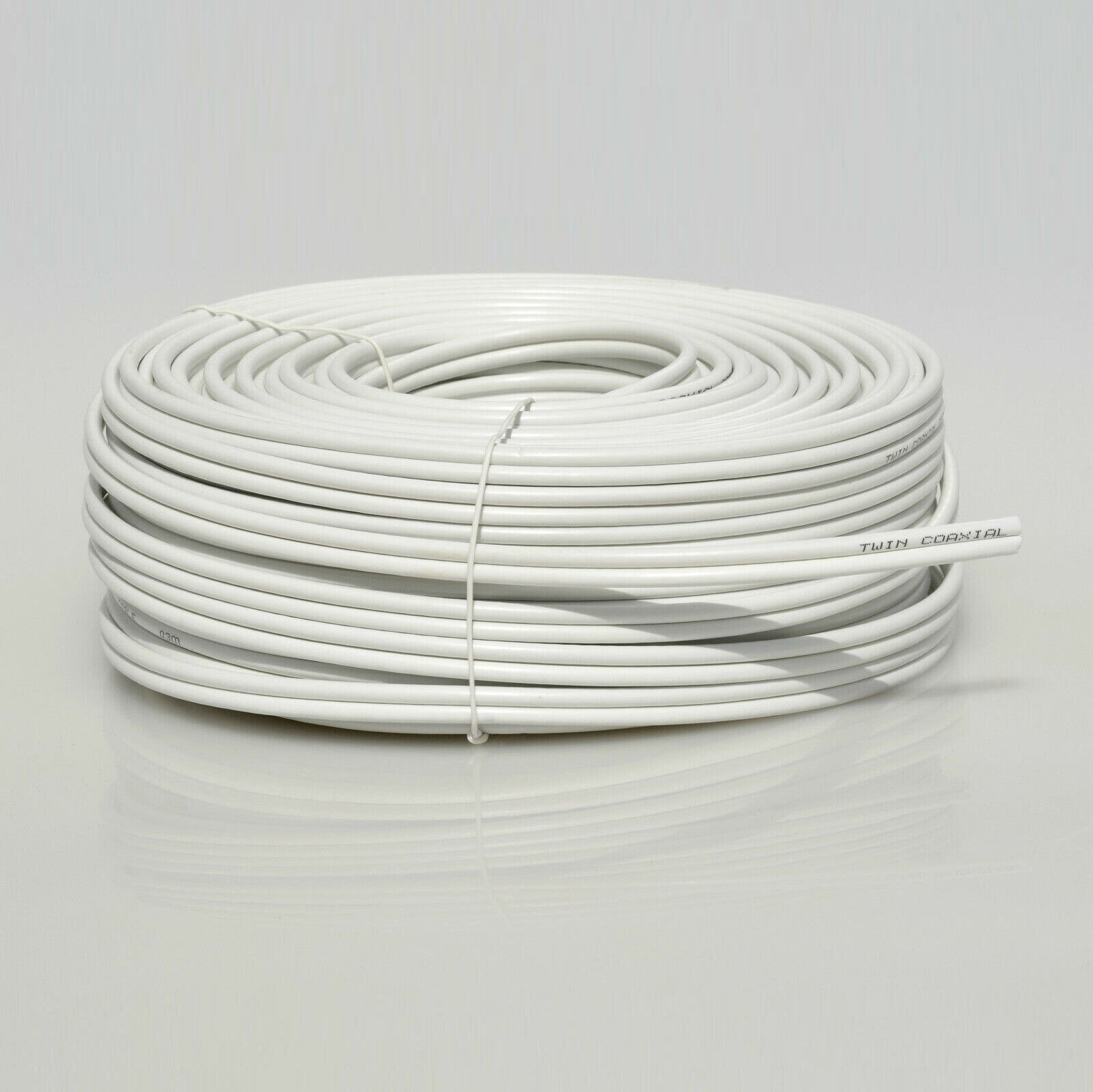 50m White Twin Shotgun Satellite Coax Cable Coaxial For Sky Plus HD TV Freesat