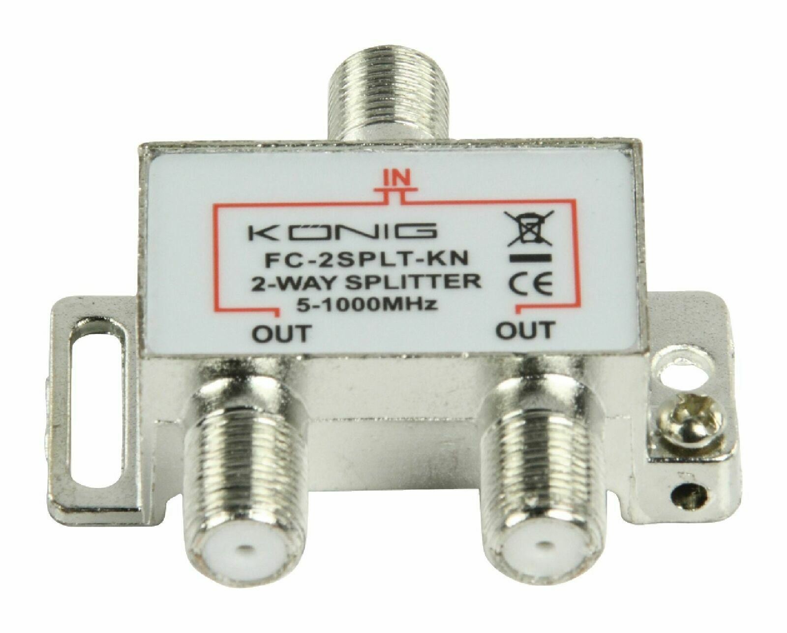 Konig 2-way CATV F-splitter tv aerials satellites freesat freeview sky 5-1000MHz