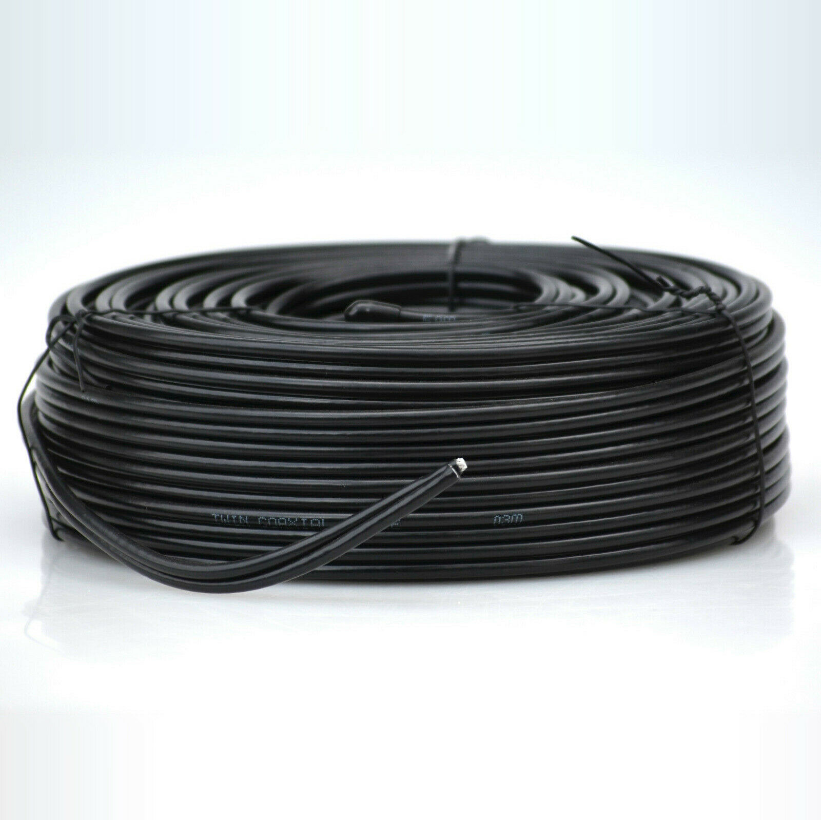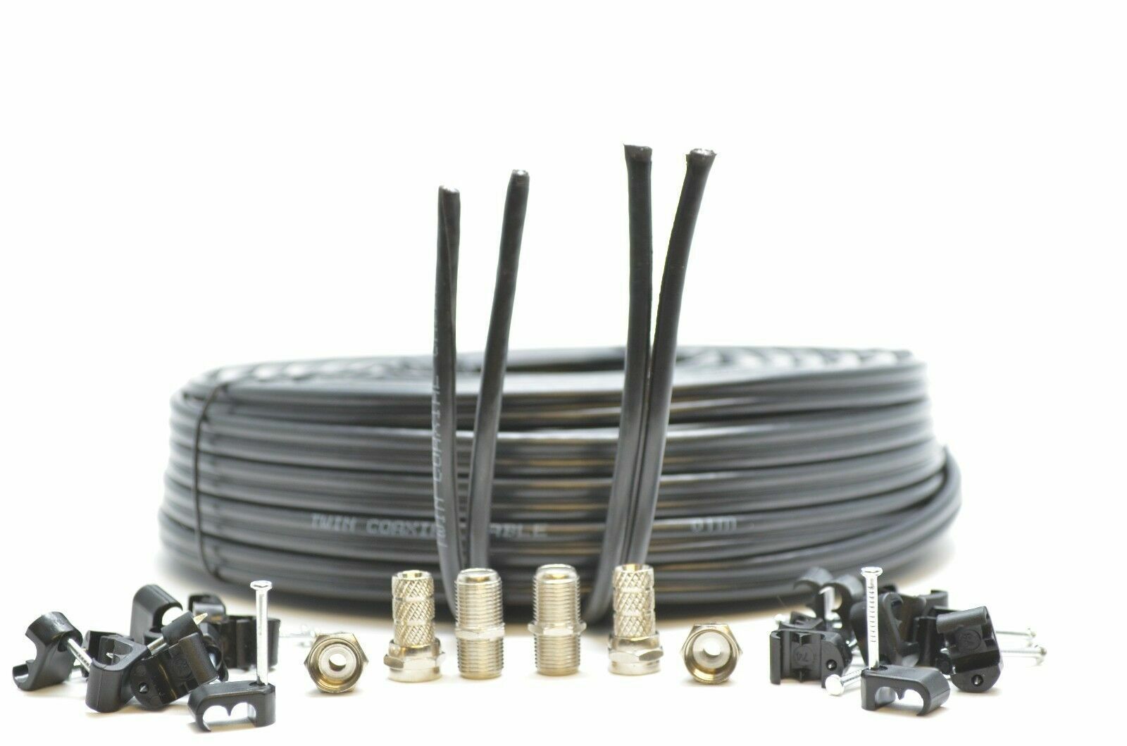 50m Black Twin Shotgun Satellite Coax Cable Coaxial For Sky Plus HD TV Freesat