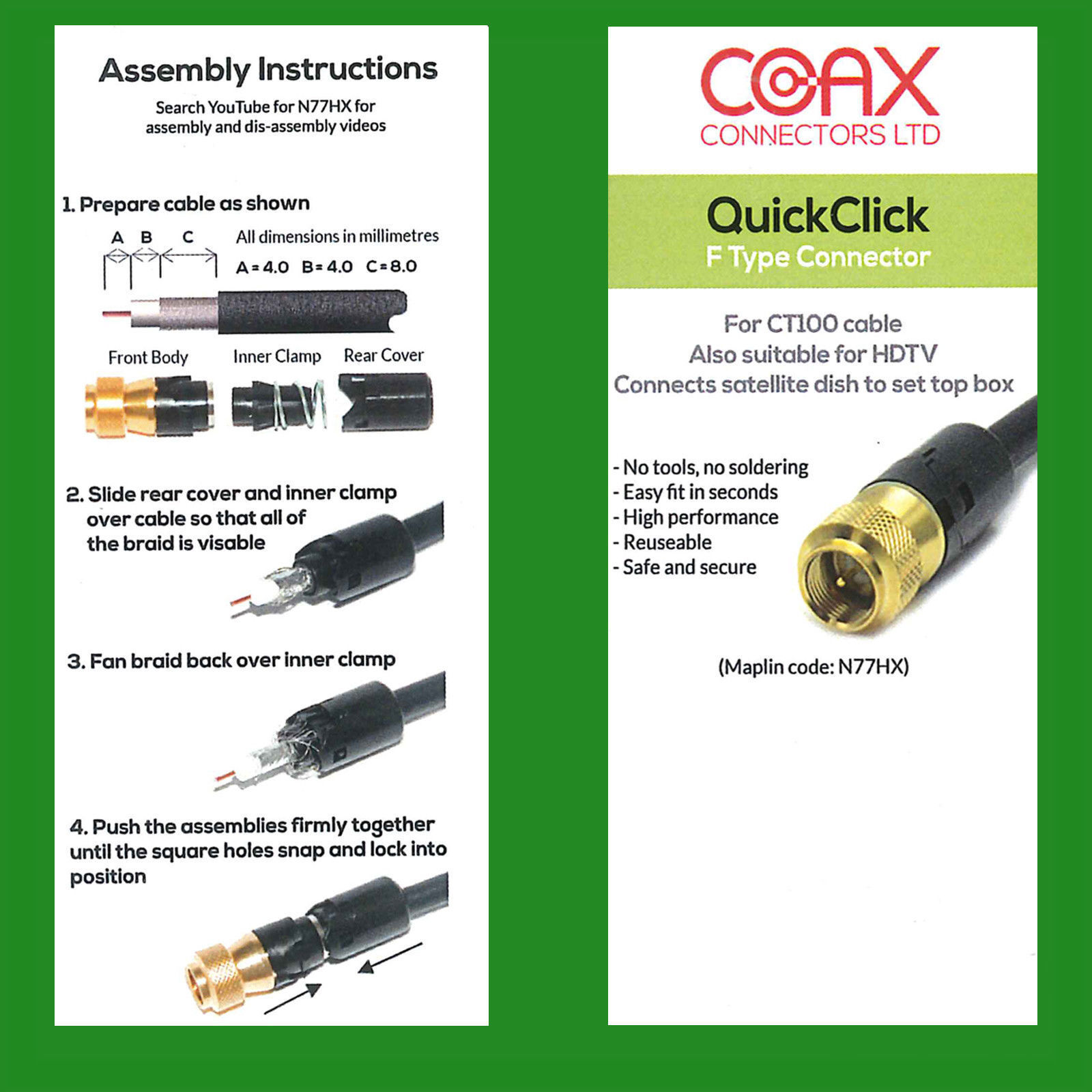 QuickClick Coax F Type Connector N77HX TV Sky Freesat Sat Assemble CT100 Cable