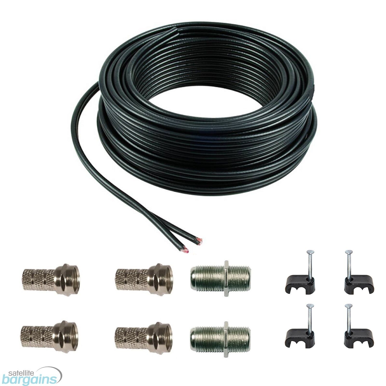 25m Black Twin Shotgun Satellite Coax Cable Coaxial For Sky Plus HD TV Freesat