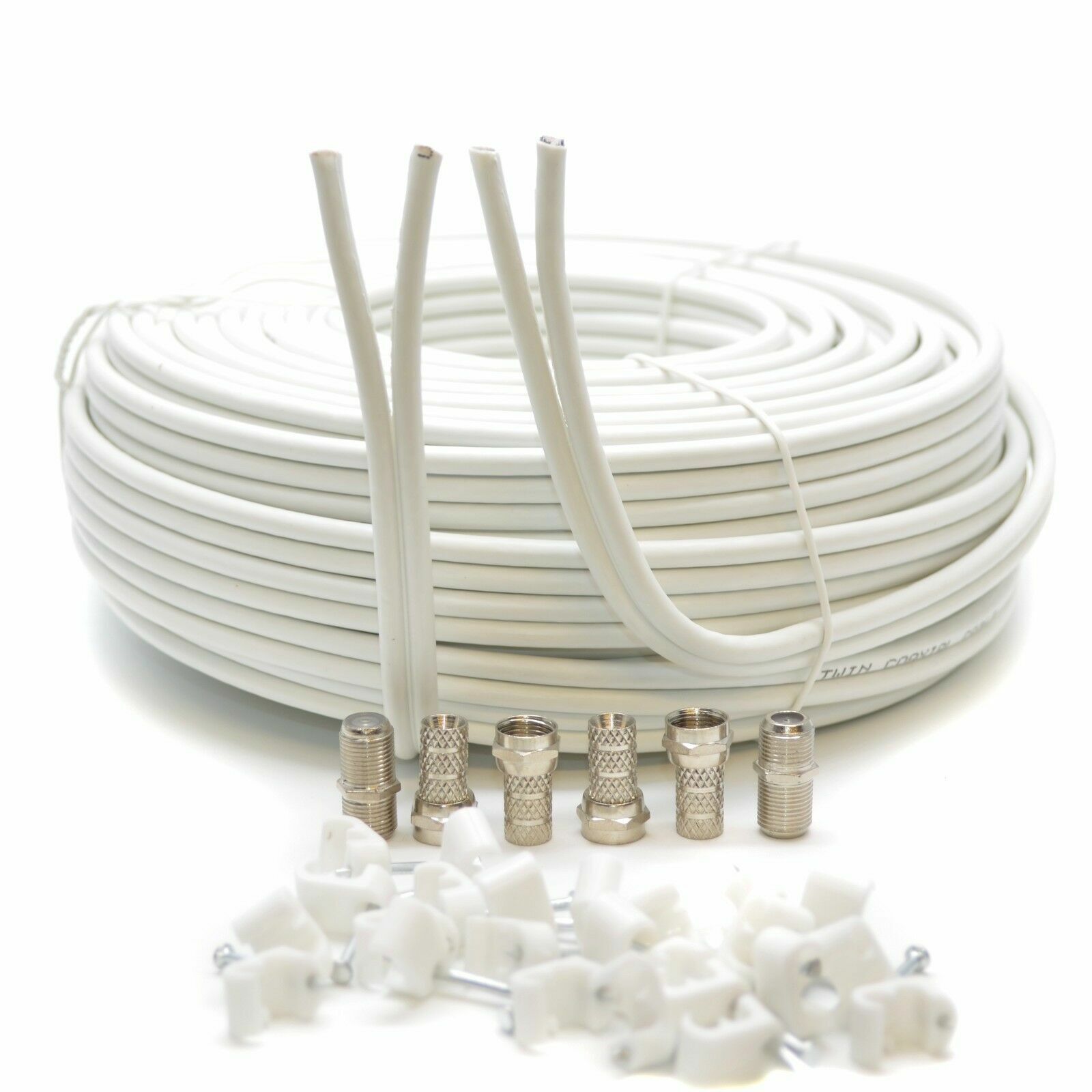 40m White Twin Satellite Coax Cable Coaxial F Lead For Sky Plus HD 3D TV Freesat