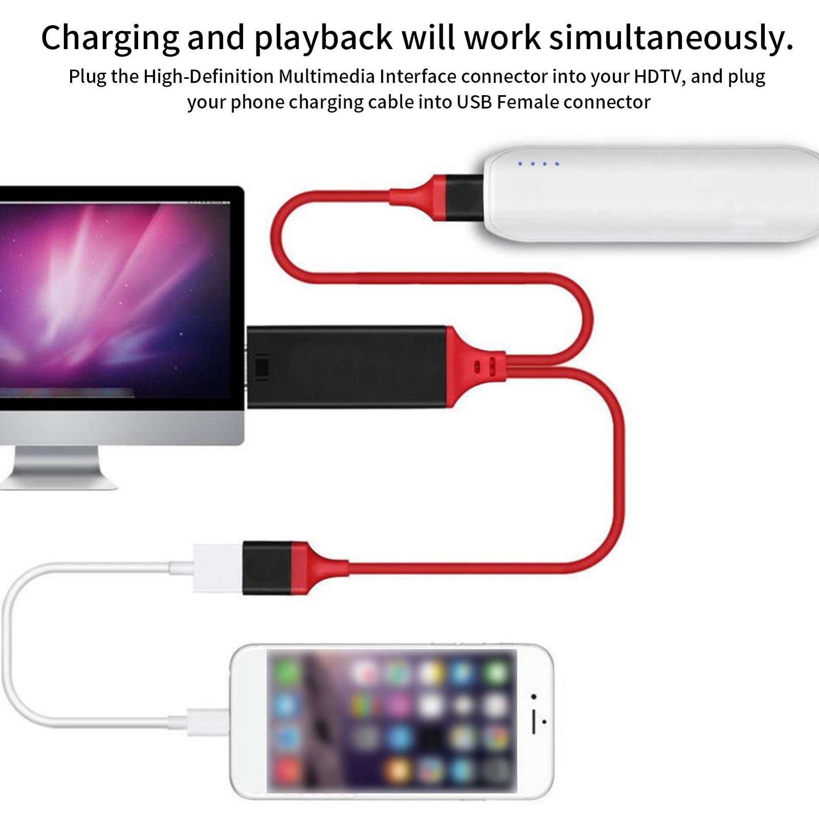 Denlane HDMI Adapter for iPhone, iPad, iPod - 1080P Digital AV Converter With Charging, Sync Screen Video & Audio to TV/HDTV/Projector/Monitor, Plug & Play