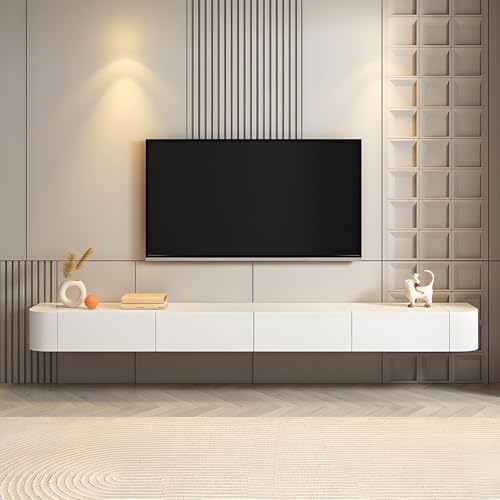TV Lowboard Hanging, TV Cabinet, White, Lots of Storage Space, Modern Style, TV Table Wood for Living Room, Bedroom, Apartment, Dormitory, TV Cabinet, 200 cm Long (240 x 20 x 24 cm)