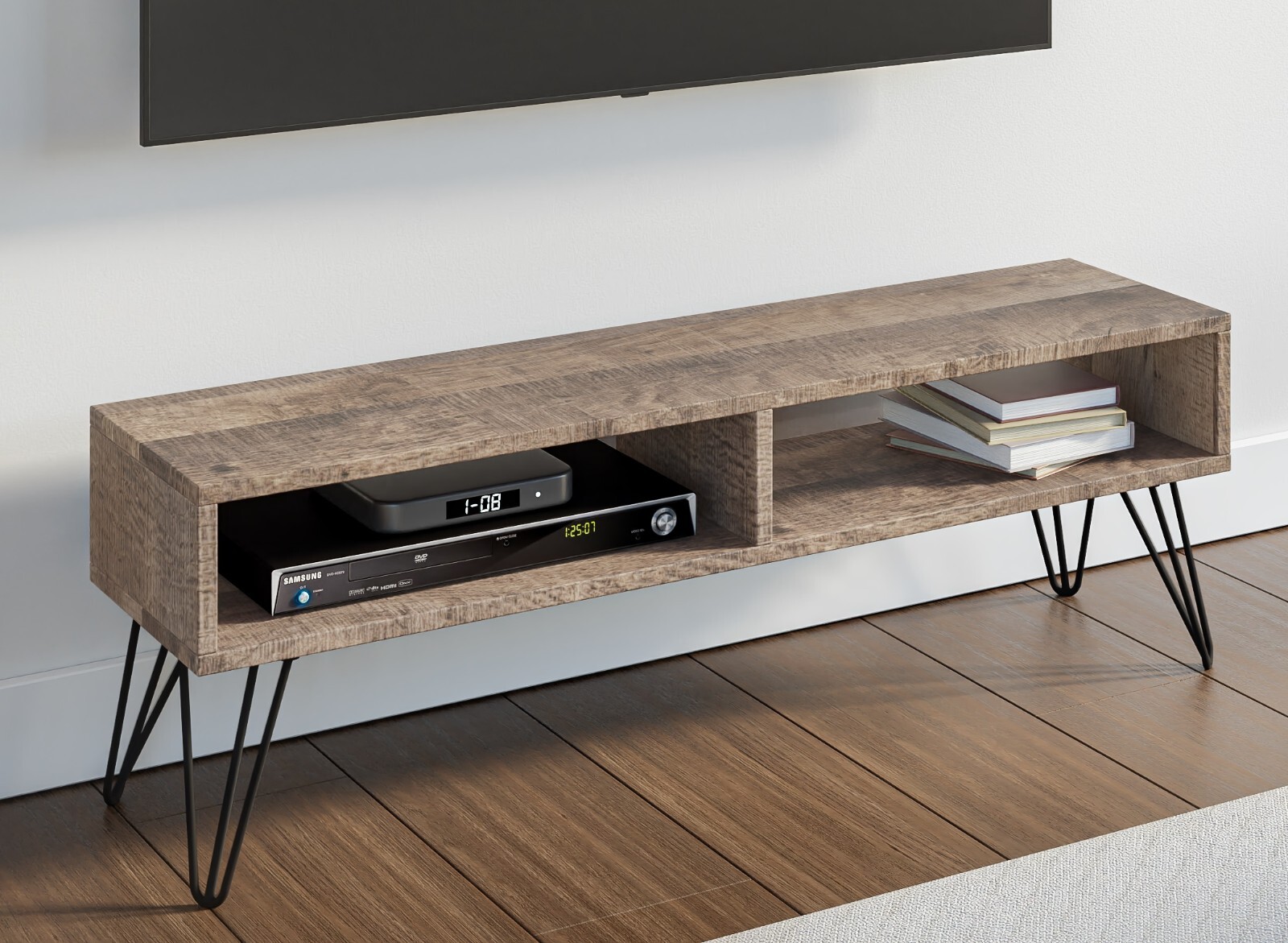 Modern TV Stand Living Room Industrial Hairpin Metal Legs Grey Oak Effect MR