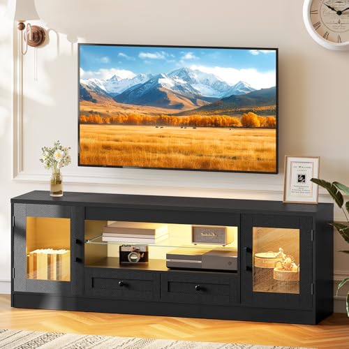 Lamtor TV-Stand with Mount and Led Light - Modern TV Stand for 65 70 inch Televisions, Entertainment Center with Power Outlet & Drawers, TV Console Media Cabinet for Living Room, Black