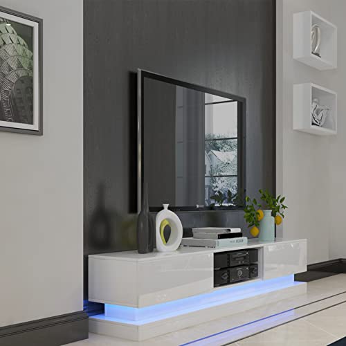 NAIMP TV Stand Cabinet Unit White 160cm With 16 Color RGB LED Lights for 43 50 55 60 65 inch 4k TV, Modern High Gloss Door & Matt Body TV Cabinet TV Unit & 2 Drawers Storage for Living Room
