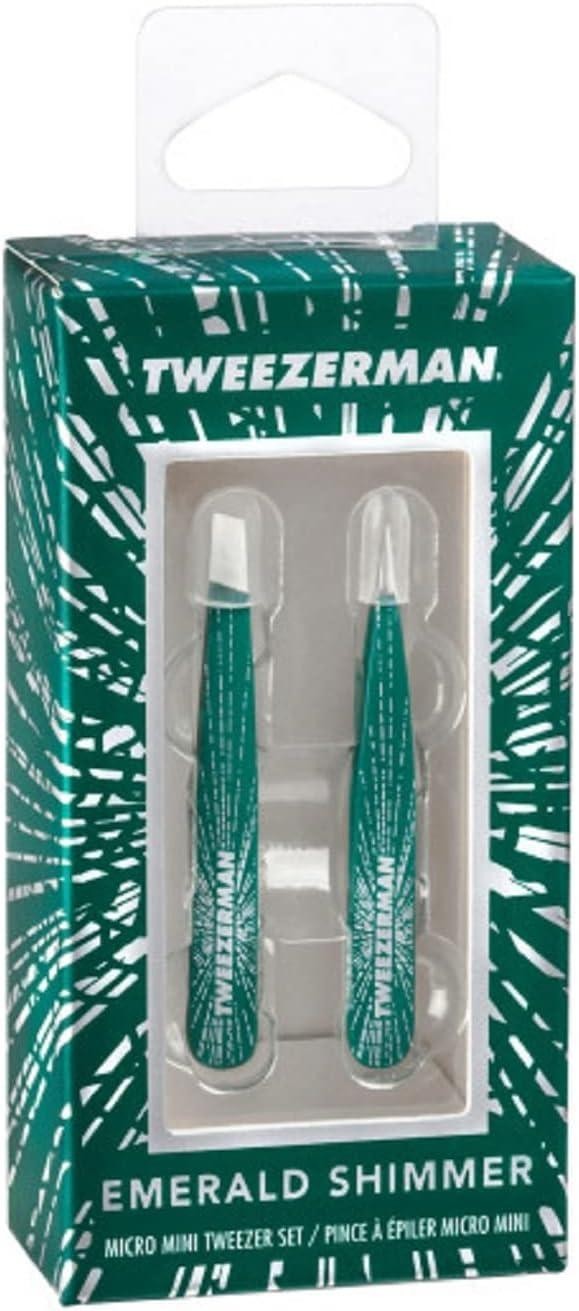 Tweezerman Emerald Shimmer Micro Mini Slant & Point Tweezer Set