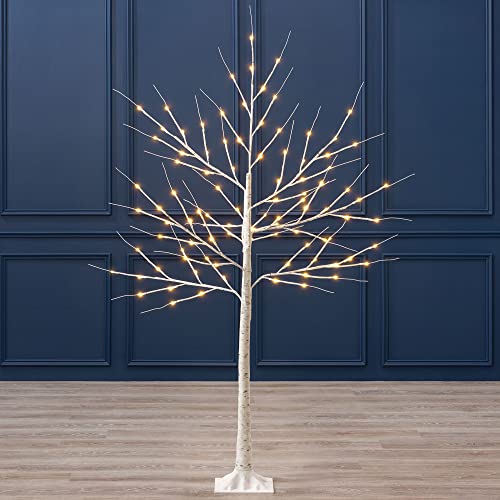 Christow Light Up Outdoor Birch Tree 5ft, Pre Lit Christmas Twig Tree with Lights, Mains Operated with Warm White LEDs (96 LED)