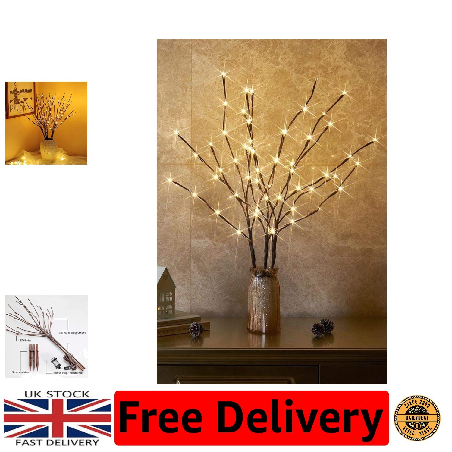 48 LED 4ft White Colour Twig Branch Tree Lights Plug In Christmas Xmas Decor