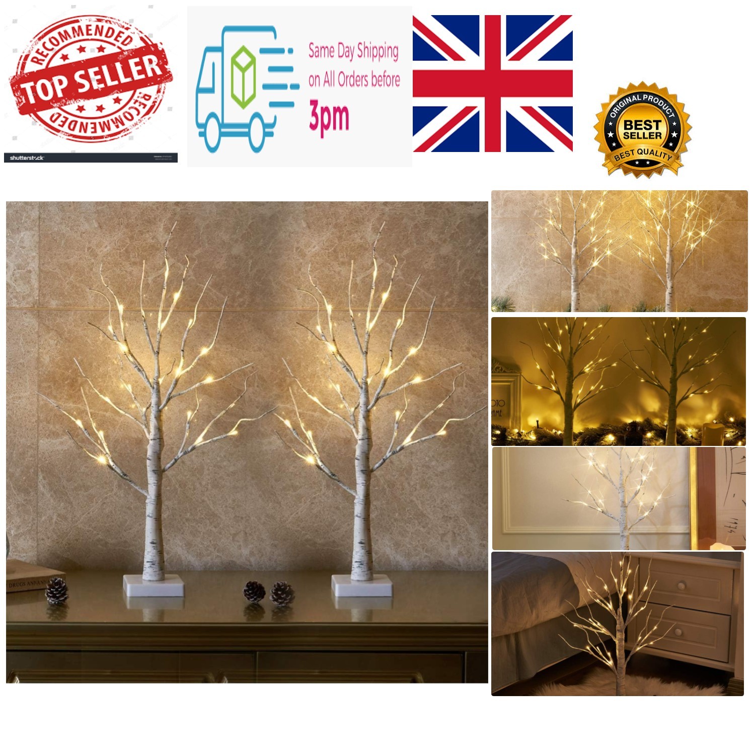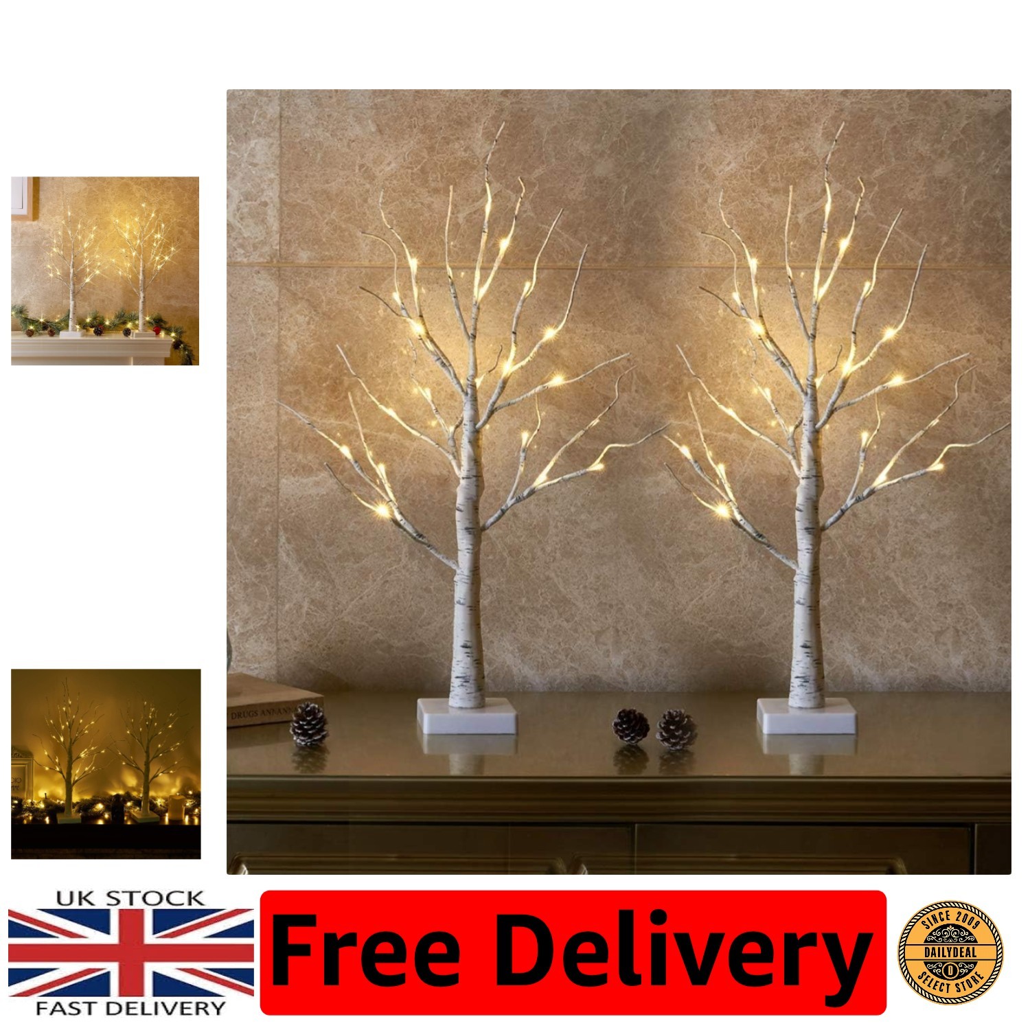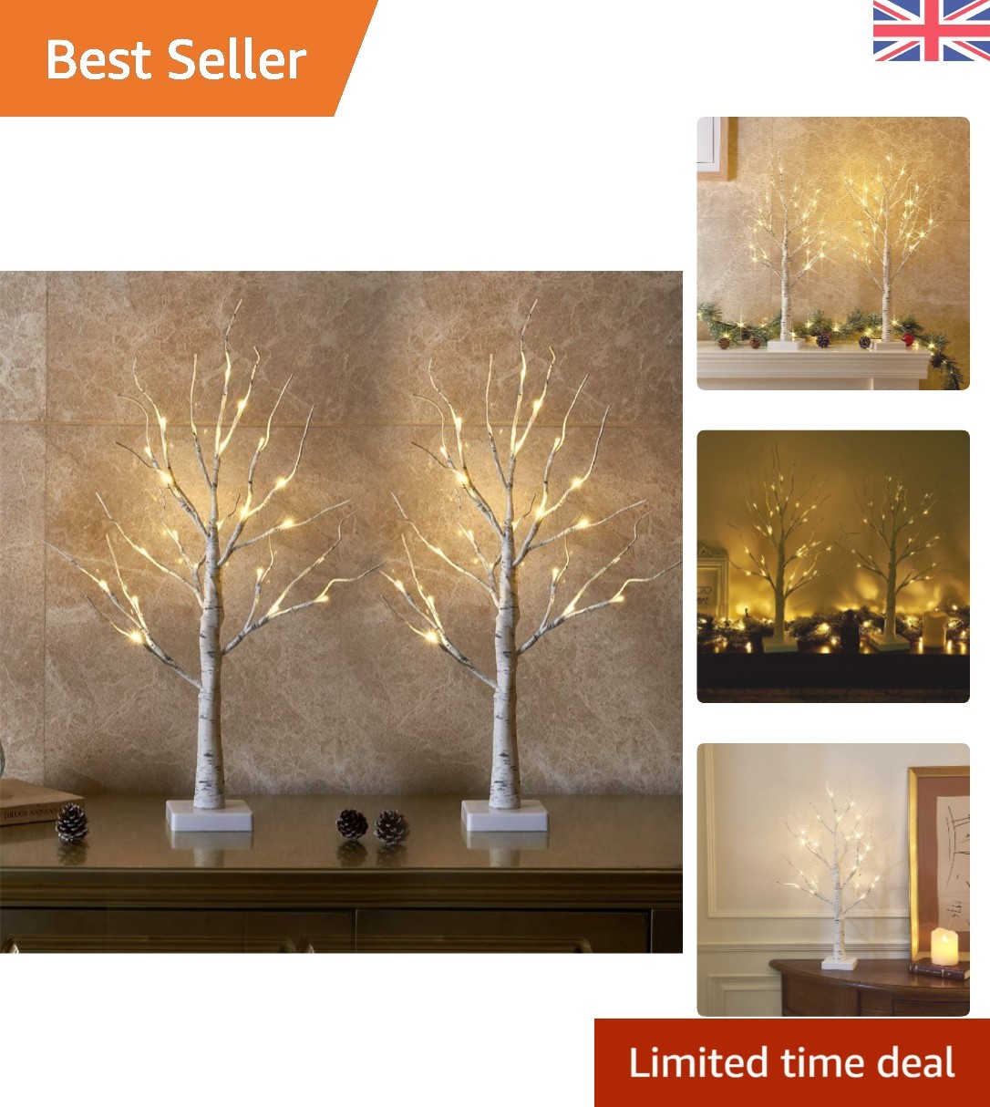 Set of 2 Lighted Birch Tree, 2FT/60CM LED Birch Twig Lights, Christmas Tree Lig