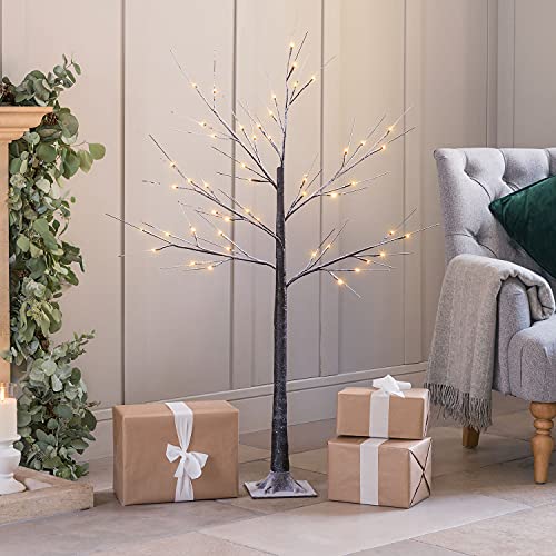 Christow Snowy Twig Tree With Lights 4ft, Pre Lit Birch Christmas Tree, Light Up Warm White LED Decoration, Indoor Outdoor, Mains Operated (48 LED)