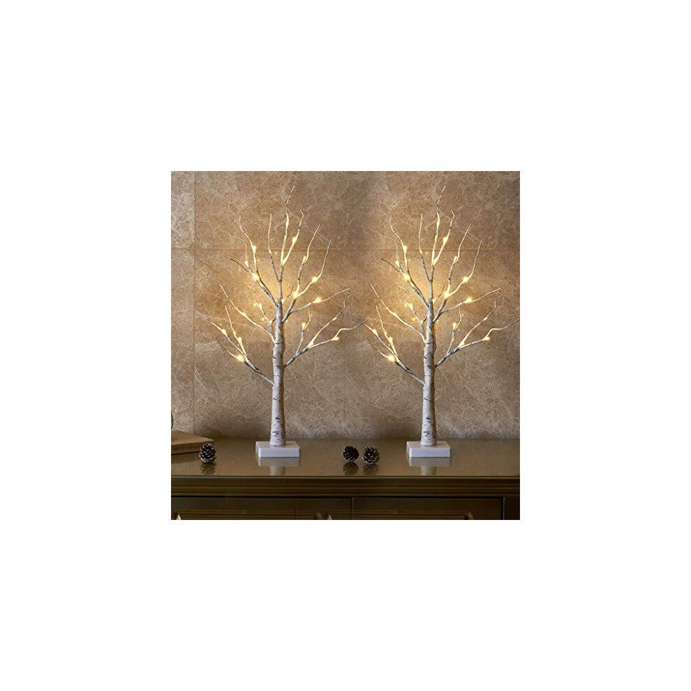 Songlypian Set of 2 Lighted Birch Trees, 2FT/60CM LED Twig Lights, Christmas Tree with 24 LEDs, Battery/USB Powered Indoor Warm White, Home Party Wedding Decoration Gifts