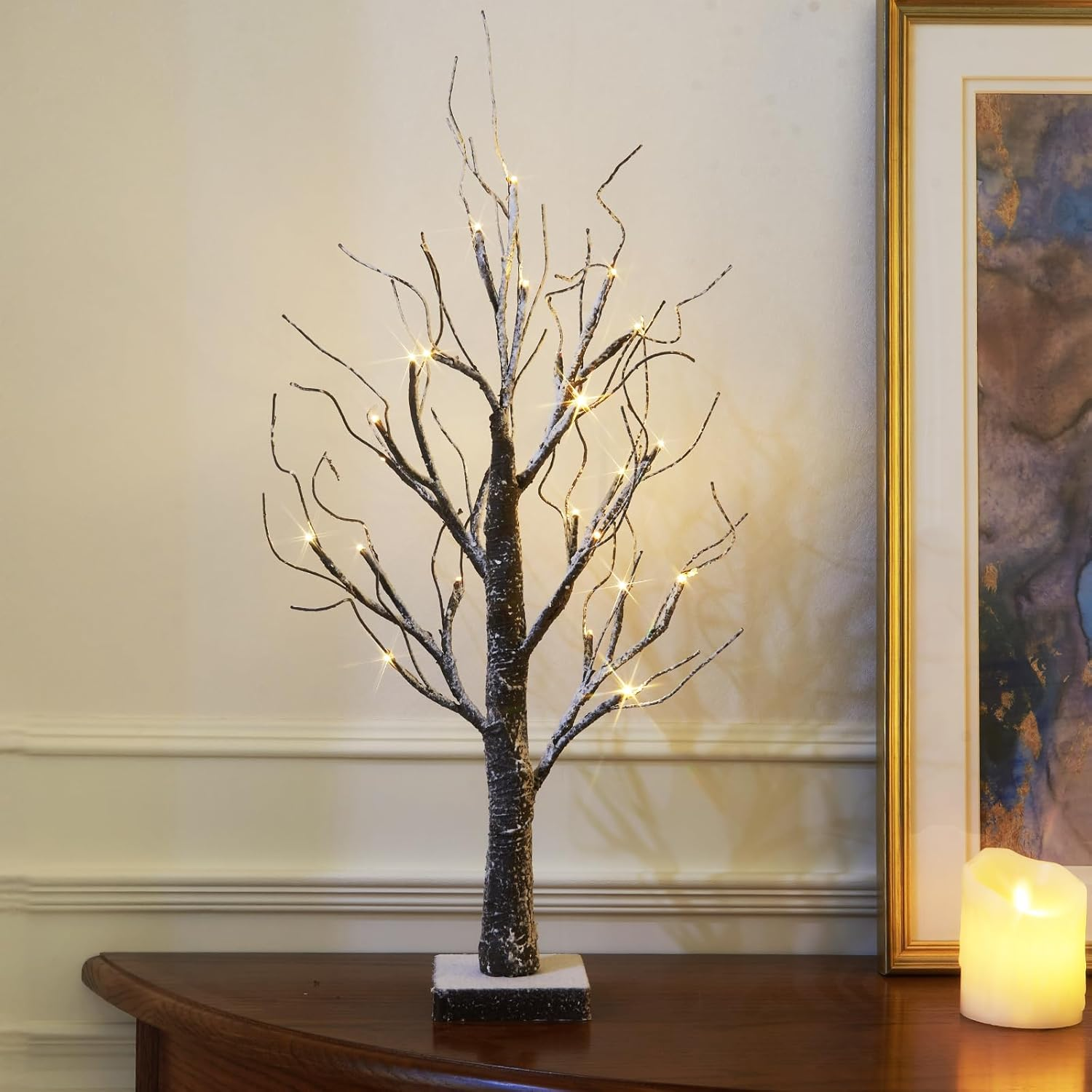 Battery-Operated Snowy Twig Tree Lights with 24 Warm White Leds Tabletop Christm
