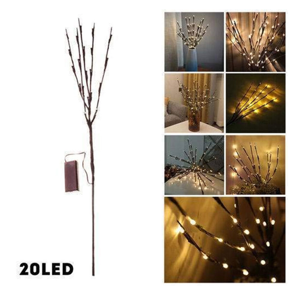 (Warm White) 20 Bulbs LED Willow Branch Lamp Artificial Branch Willow Twig Vase Lights Battery Powered