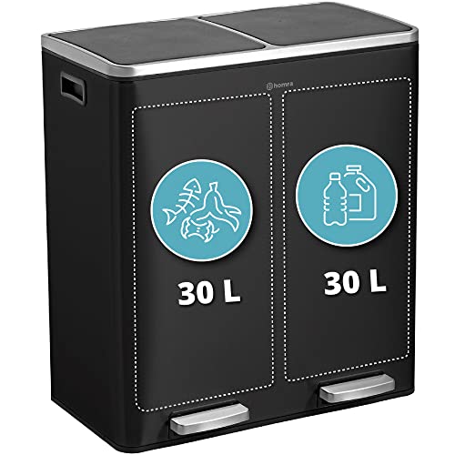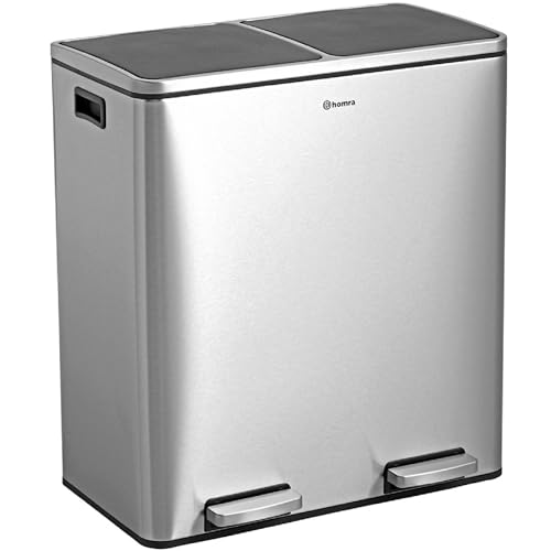 Homra Dual Kitchen Bin 60l – Double Rubbish Bins 2x30l – 2 Compartment Pedal System – Twin Section Waste&Recycling Separation – Soft Close Design – Inner Buckets with Handles - Stainless Steel