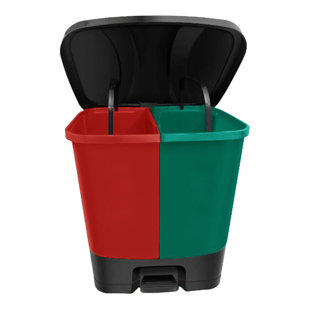 (18.5L Red + 18.5L Green) Twin Pedal Bin Dustbin With Lid And Handle Home Garden