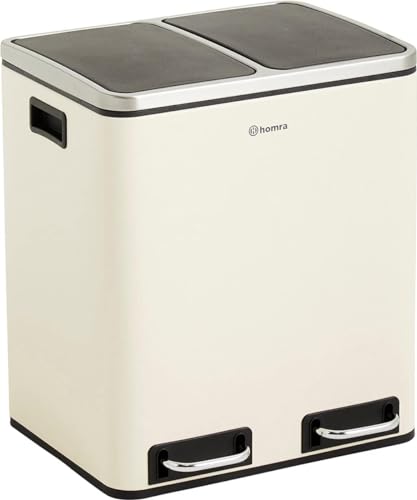 Homra Dual Kitchen Bin 30l – Double Rubbish Bins 2x15l – 2 Compartment Pedal System – Twin Section Waste&Recycling Separation – Soft Close Design – Inner Buckets with Handles – Stainless Steel