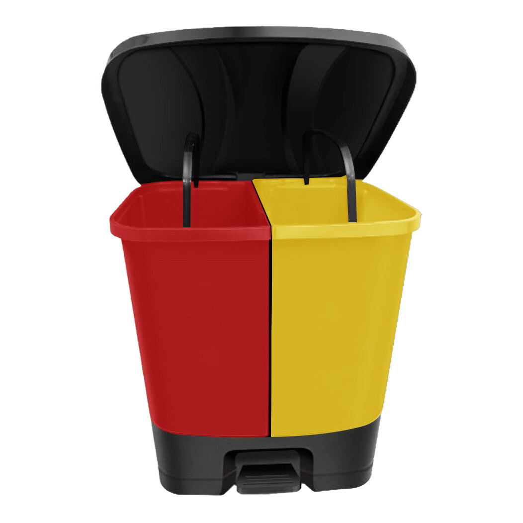 37L Twin Bin Kitchen Dry Wet Segregation Recycling Foot Pedal Bin - Red + Yellow