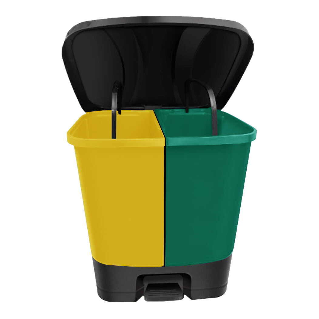 Small Twin Pedal Bin Kitchen Dustbin With Black Lid And Handle (Green + Yellow)
