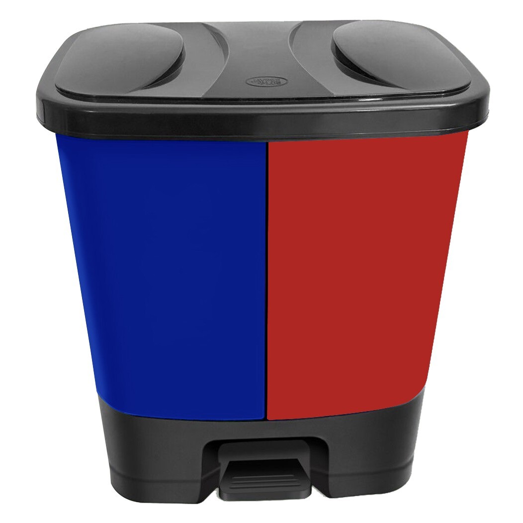 37L Twin Bin Plastic Foot Pedal Bin Kitchen Garden Waste Dry & Wet Blue + Red