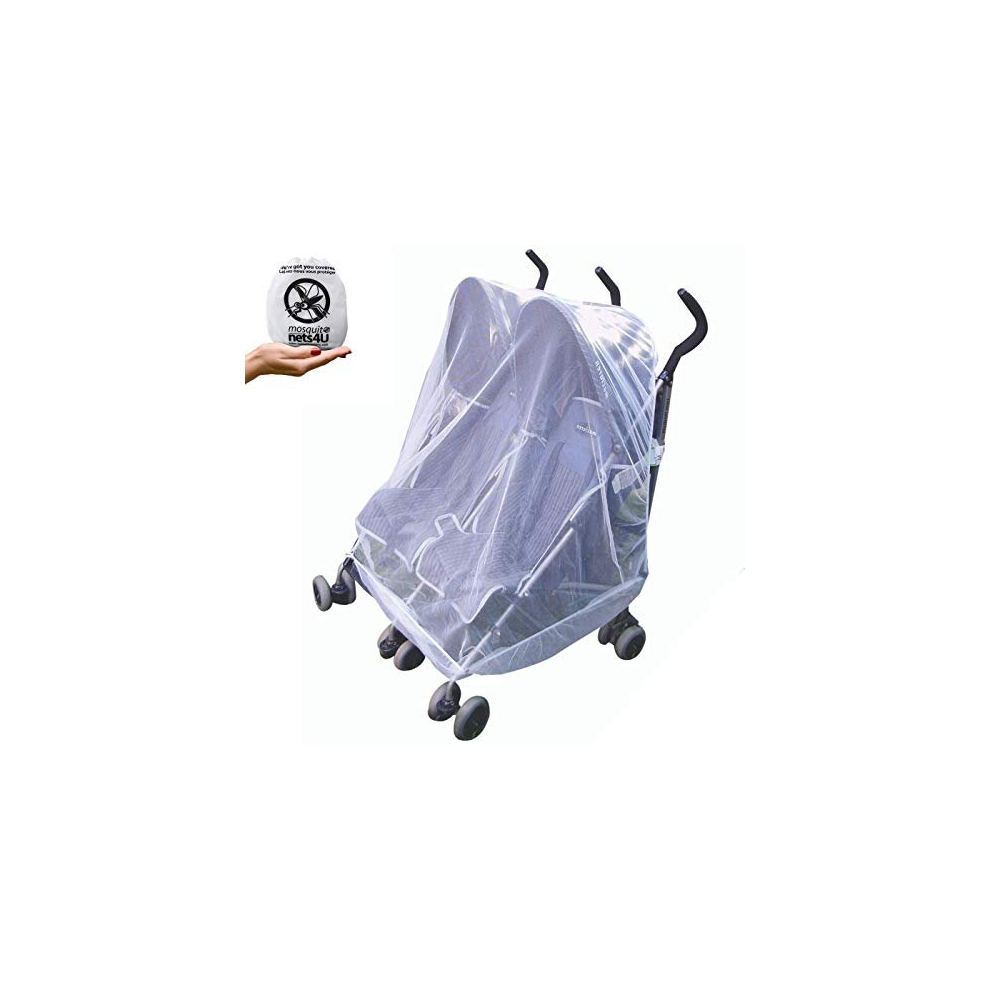 Mosquito Net for Twin or Tandem Buggy Pushchair FREE Travel Net Bag – BONUS! 6 Insect Repellent Smiley Patches