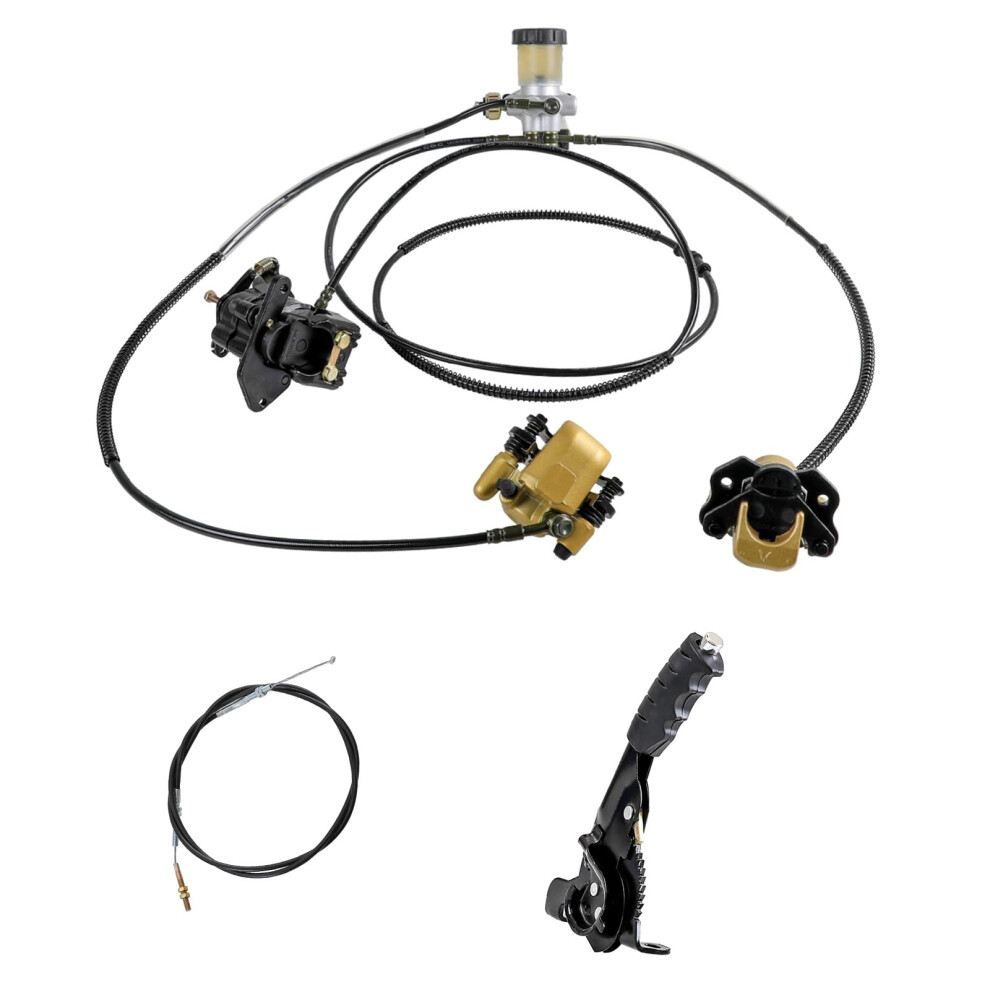 Go Kart Hydraulic Brake Kit with Twin Caliper Assembly Hand Lever and Cable for ATV UTV Buggy