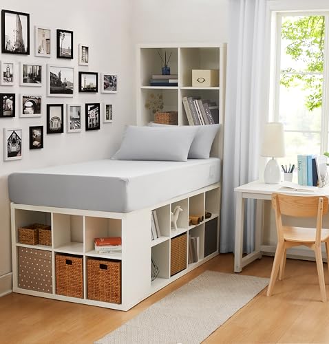 Linen Closet Cotton Rich Twin/Twin XL Dorm Sheet Set with Bonus Phone Pocket, Includes Two Fitted Sheets and Two Pillowcases, fits up to 14" Mattress, Light Gray