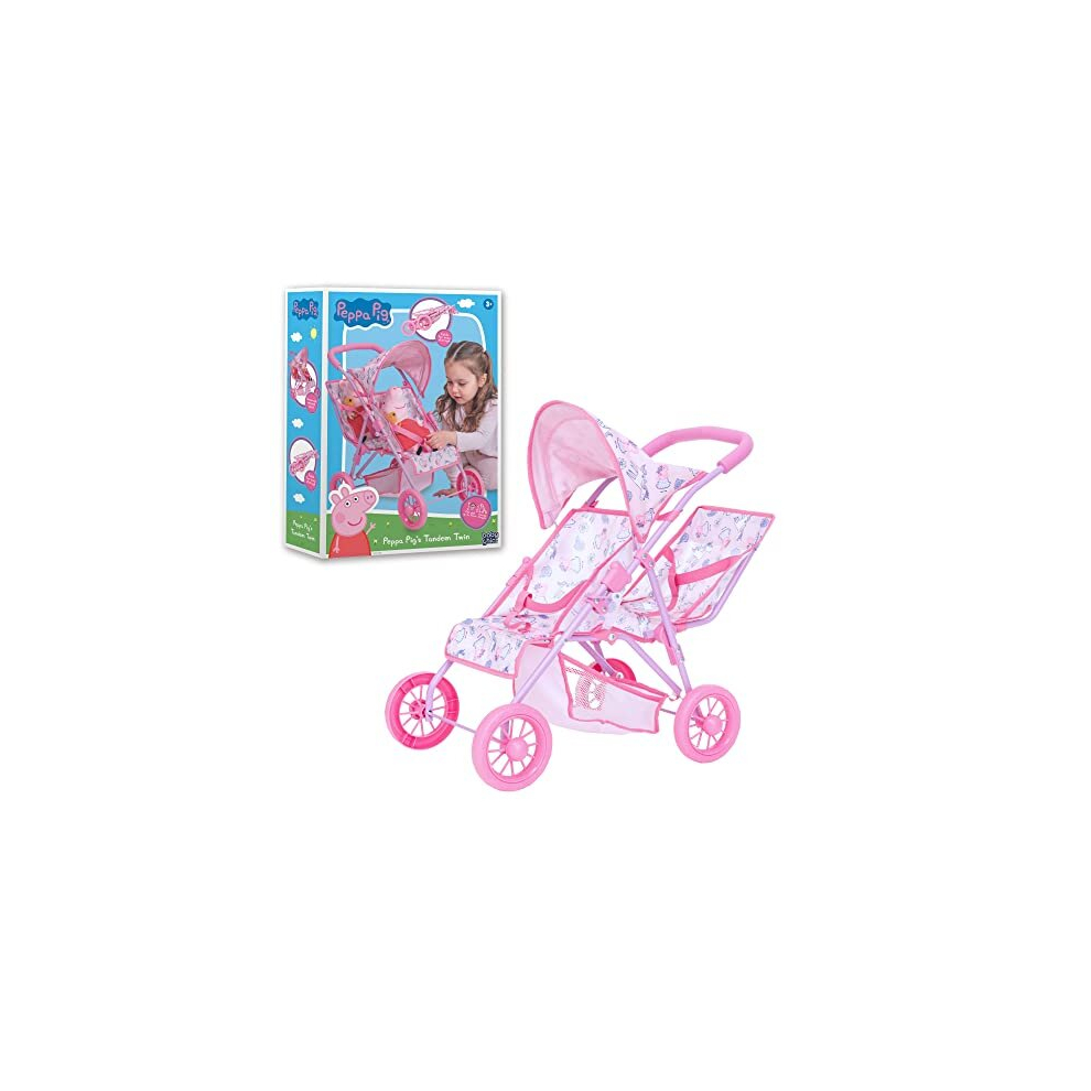 Peppa Pig Twin Stroller | Children's Baby Doll Twin Pram Toy | Pink Peppa Pig Themed Double Pushchair | Easy Umbrella Fold Kids Stroller | Suitable