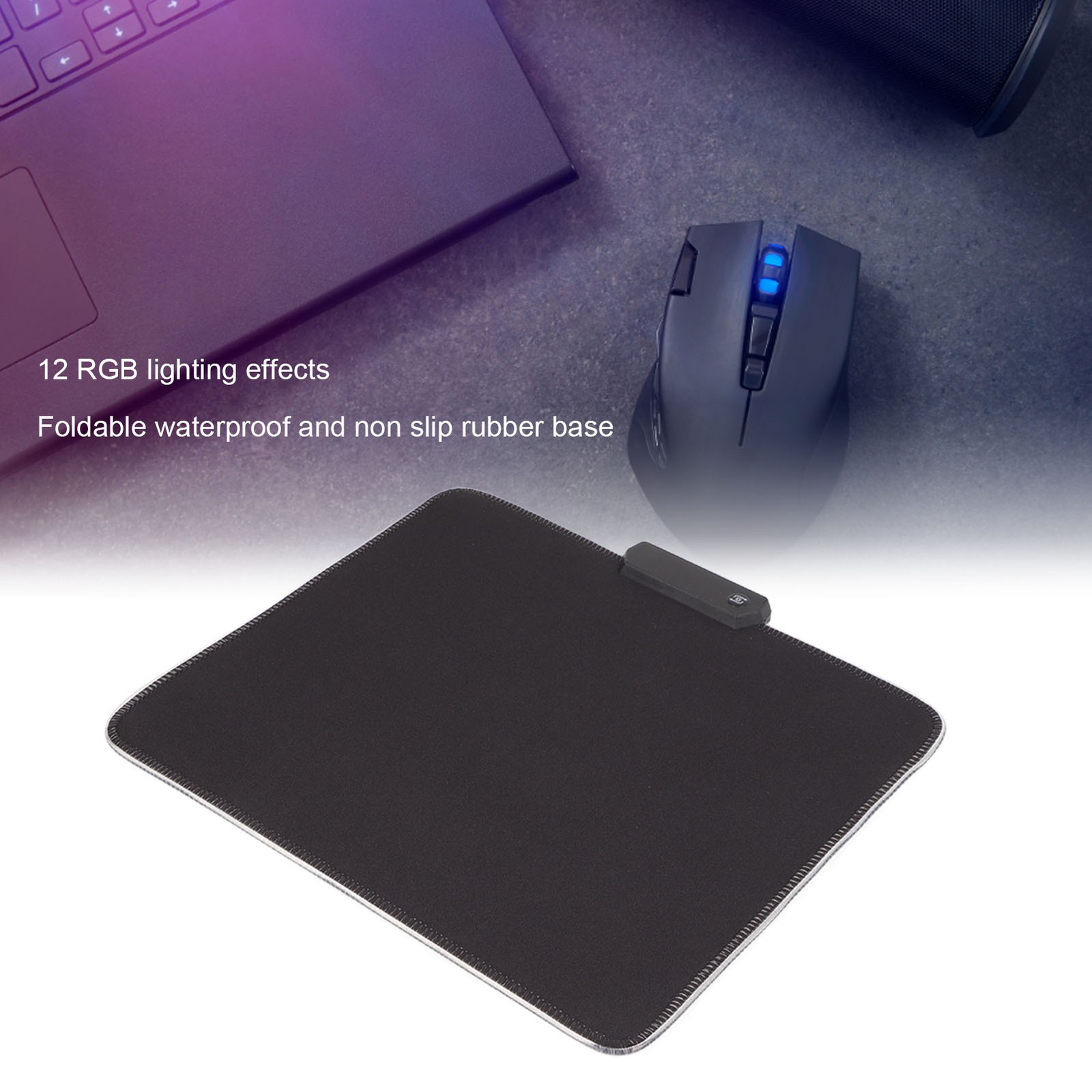 RGB Gaming Mouse Pad,300x250x4mm USB Wired Illuminated Mouse Pad,Foldable Led Mousepad,Waterproof Office Desktop Mat with Anti-Slip Rubber Base for Low DPI Game