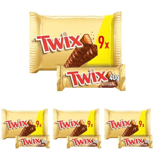 Twix Chocolate Bars, Caramel & Milk Chocolate Biscuits, 9 x 40g Multipack, Perfect for Gifts, Ideal for Snacks (Pack of 4)
