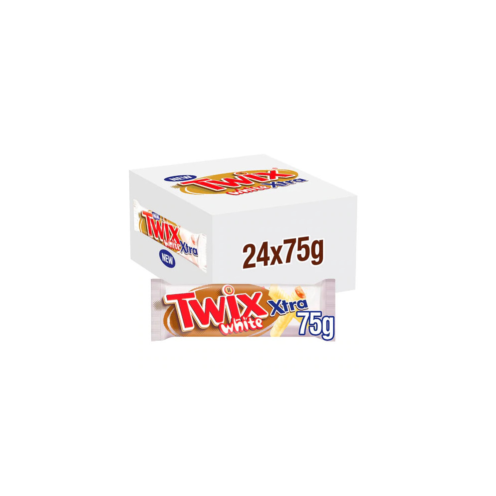 Twix Xtra White Chocolate Bars 75g x24 - Full Box of 24 White Chocolate Caramel Biscuit Bars