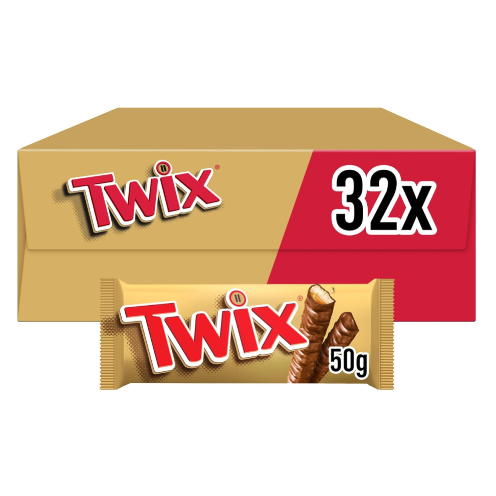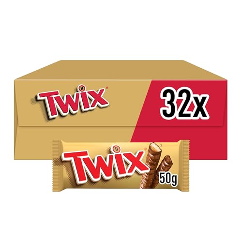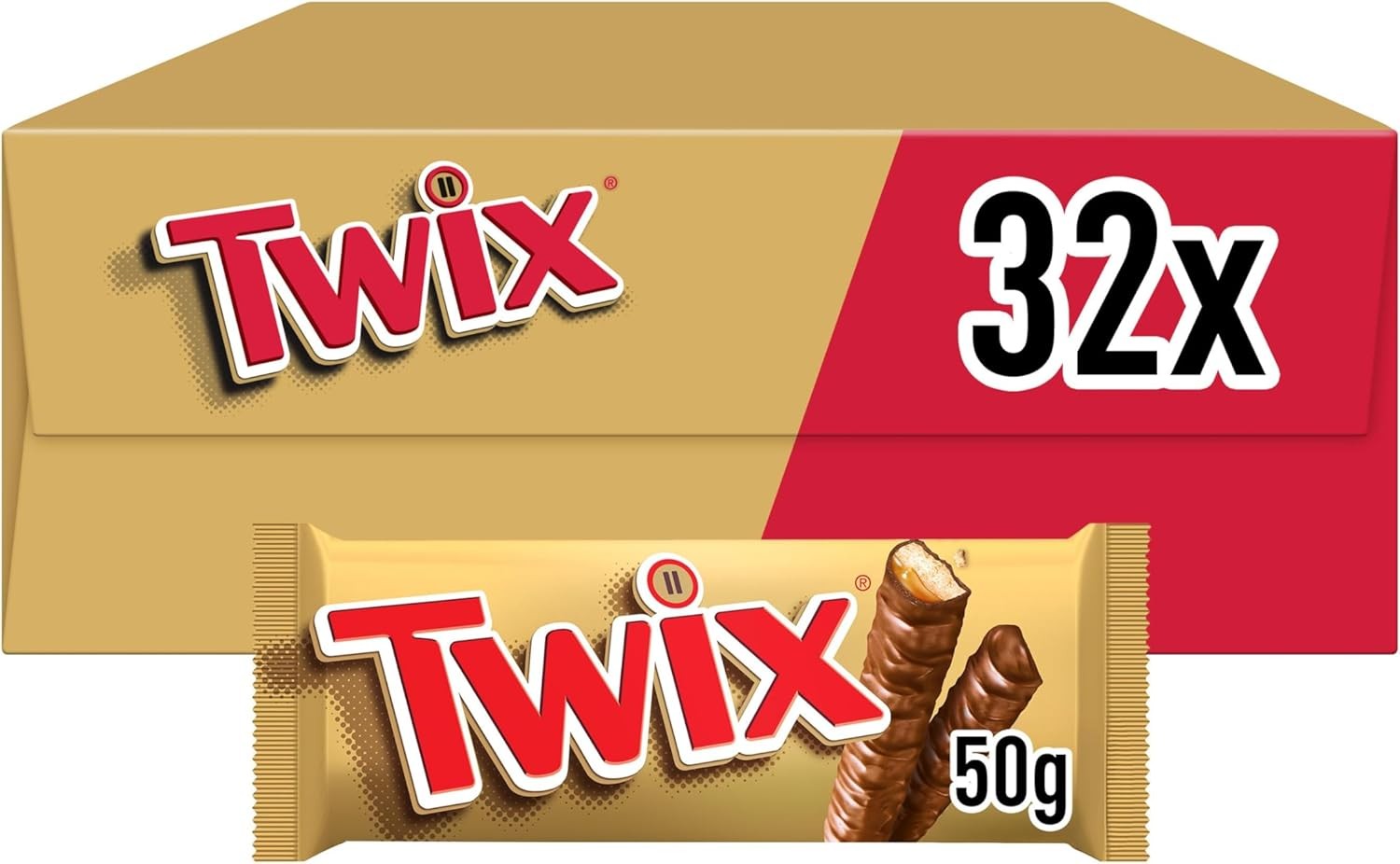 Twix Chocolate Bars, Caramel & Milk Chocolate Biscuits, 32 x 50g Bulk Box, Ideal for Hampers, Perfect for Gifts and Snacks