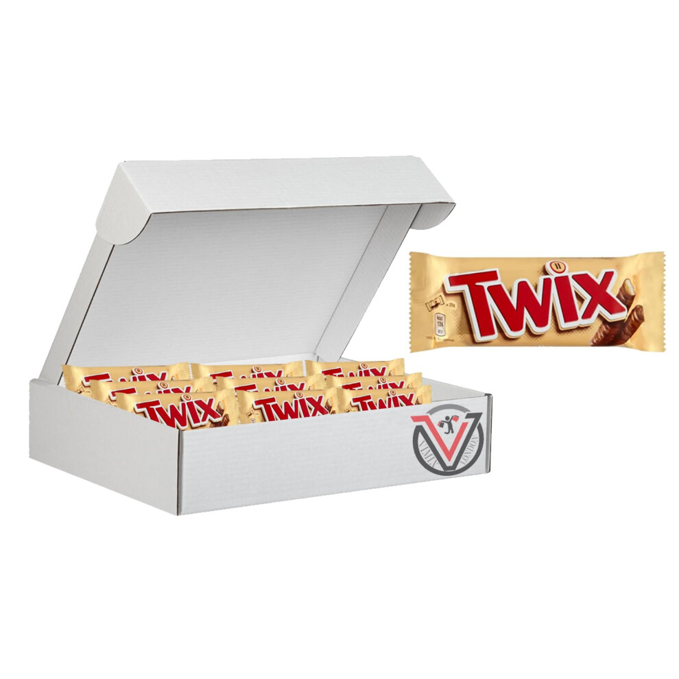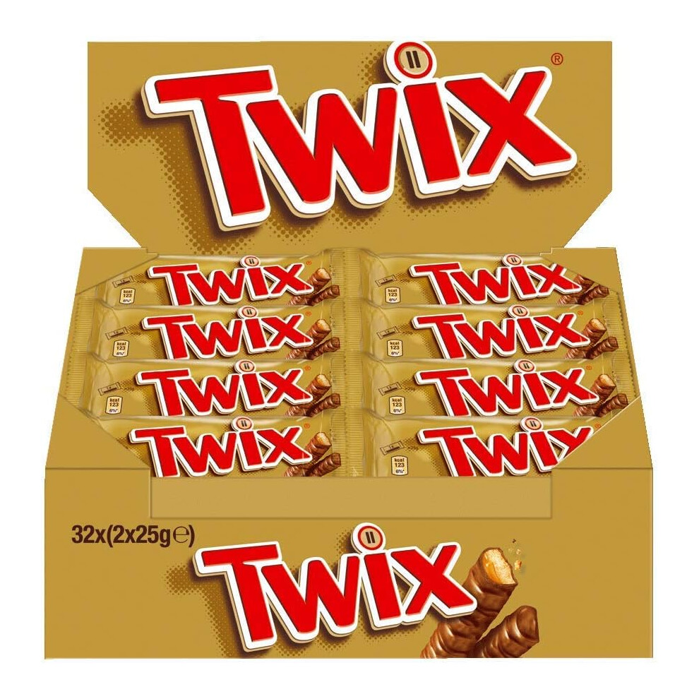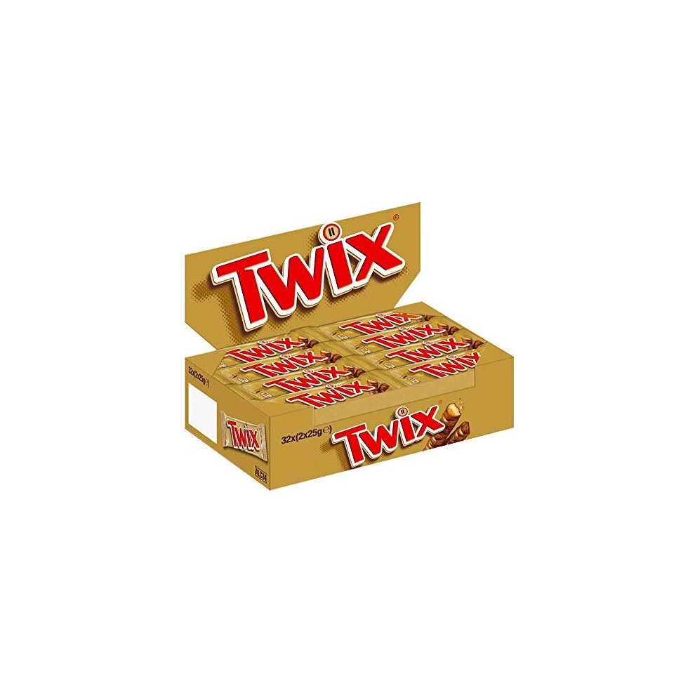Twix Twin Chocolate Bars 50g Pack of 32 - Caramel & Biscuit Covered in Milk Chocolate (Vegetarian)