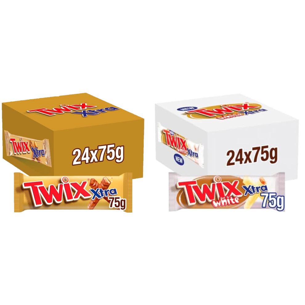Twix Xtra Chocolate Biscuit Twin Bars, Standard 75g & White 75g, 2 Full Boxes oF 24 Bars, Ideal Present for Christmas