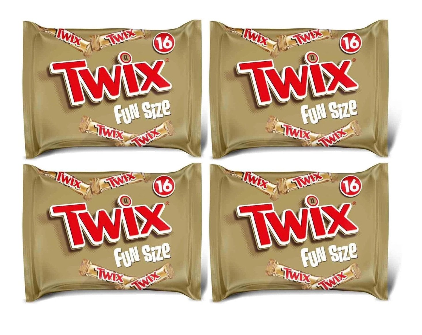 Twix Caramel & Milk Chocolate - 4 Fun Size Sharing Bags (64 Bars) - BB: 9/11/25