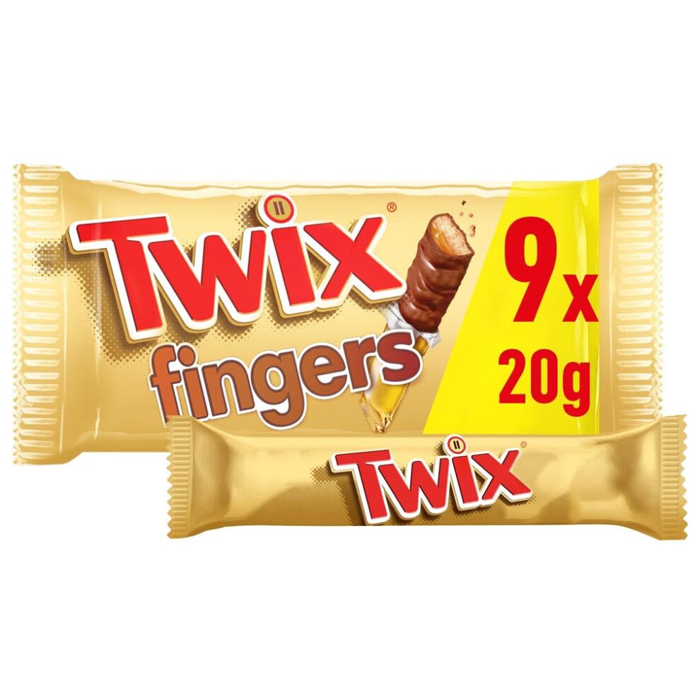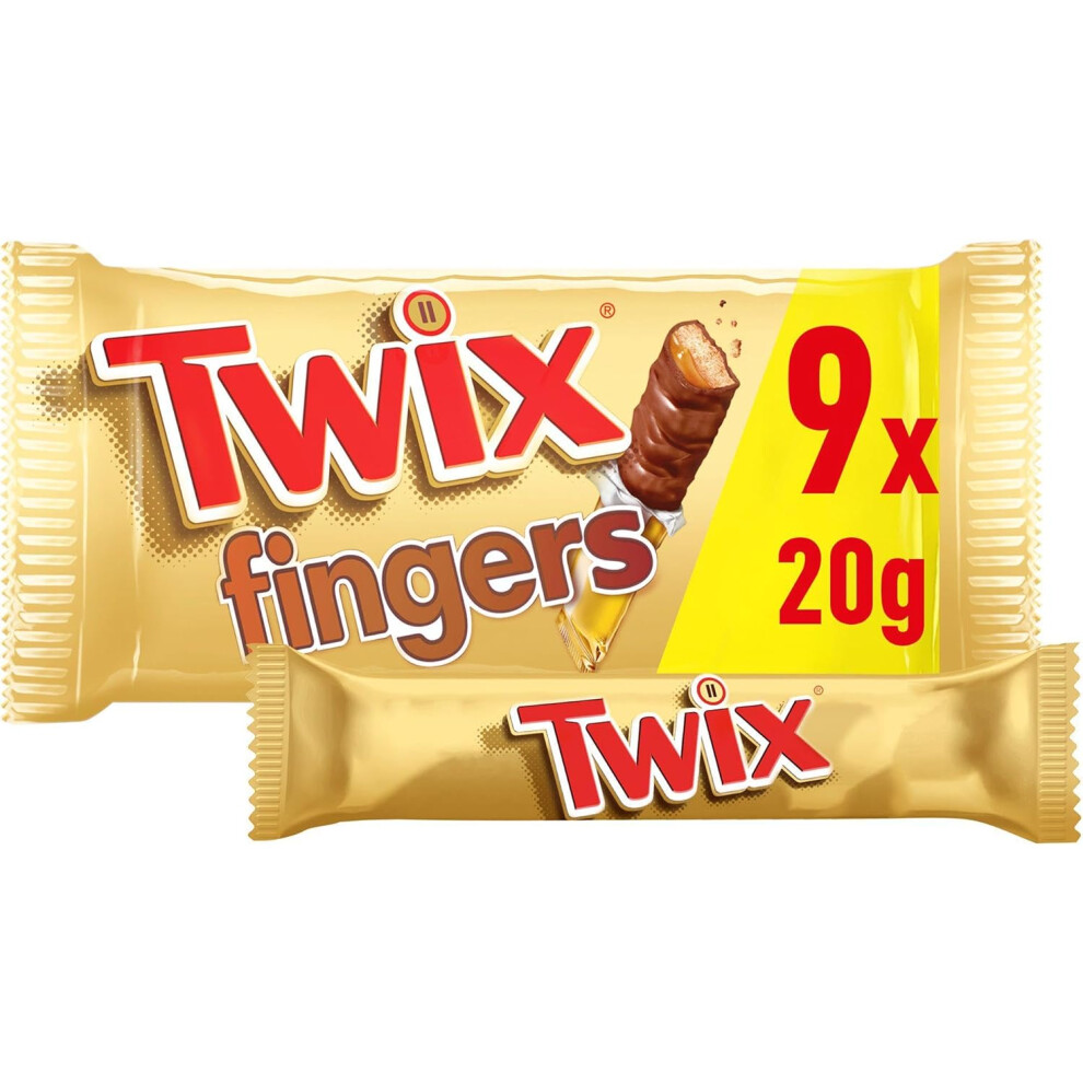 Twix Caramel & Milk Chocolate Fingers Biscuit Snack Bars Multipack 9x20g (Pack of 4)