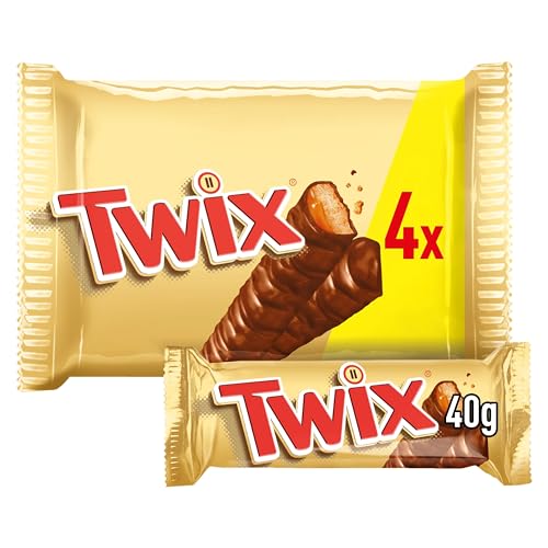 Twix Chocolate Biscuit Bars with Caramel, for Gift Bag,4 Bars of 40g (Pack of 4)