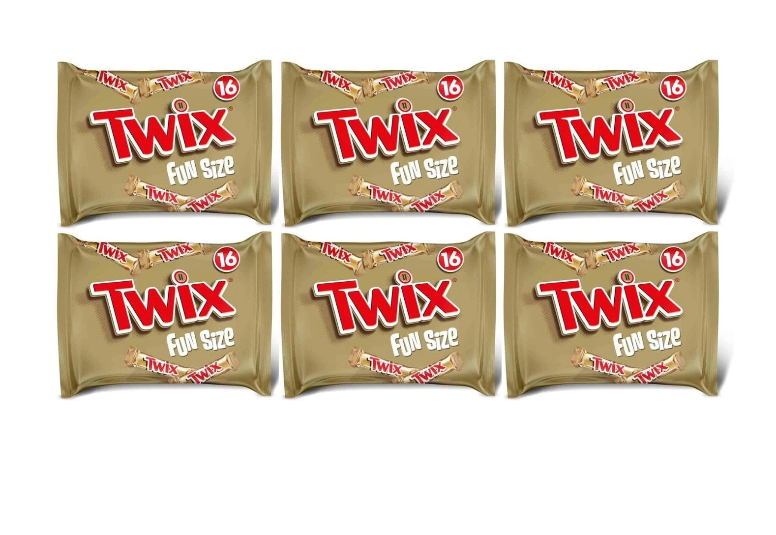 Twix Caramel & Milk Chocolate - 6 Fun Size Sharing Bags (96 Bars) - BB: 9/11/25