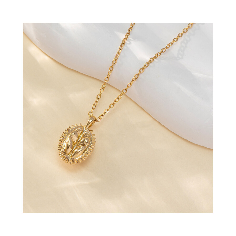 (A large durian necklace with half of the flesh) Two-worn heart-to-heart opening and closing four-leaf clover necklace for women, fashionable heart-sh