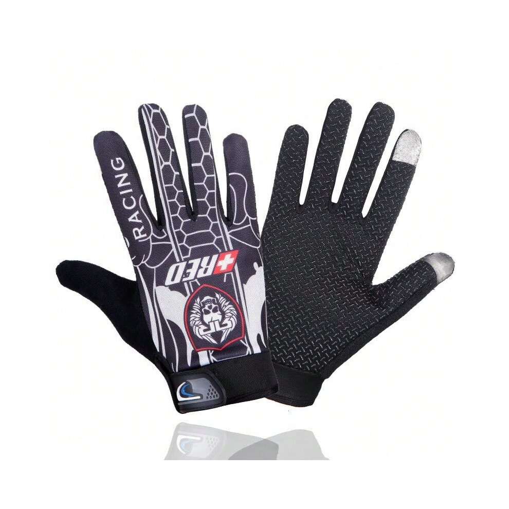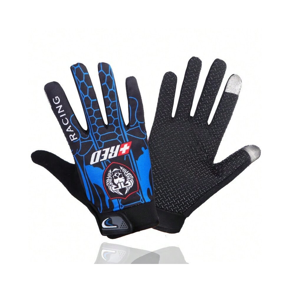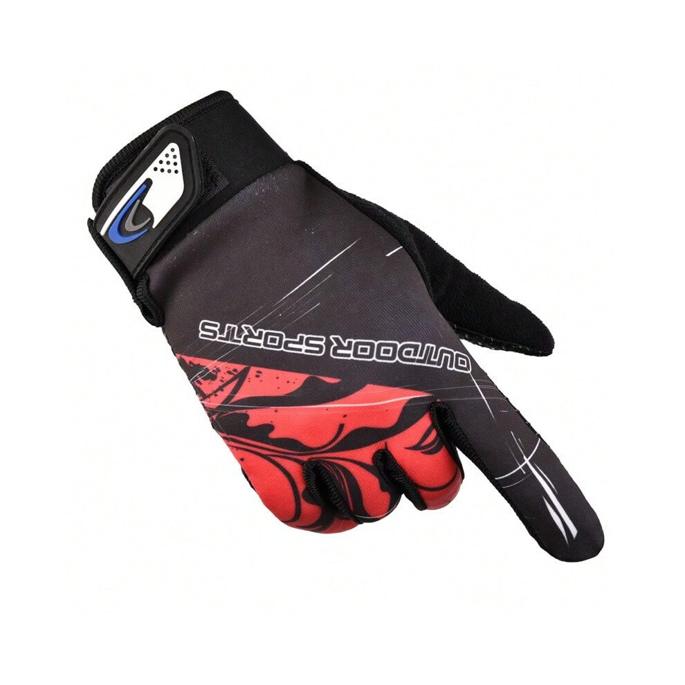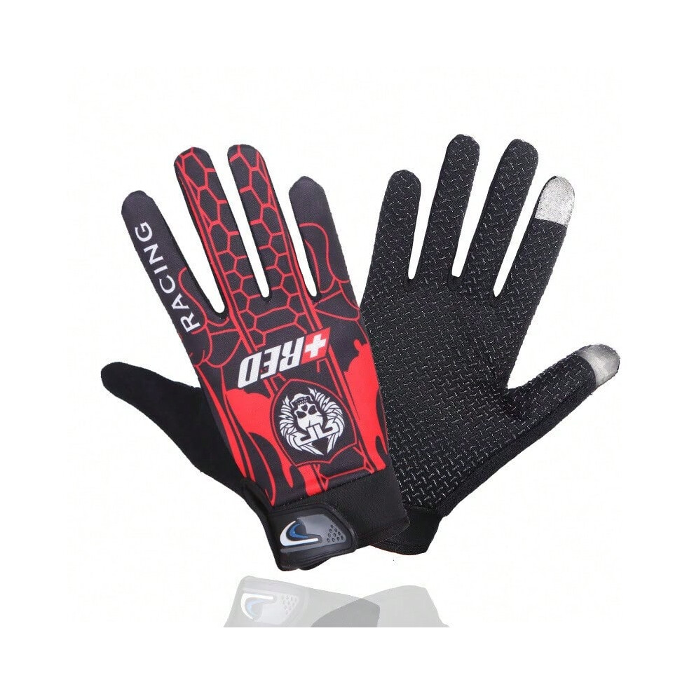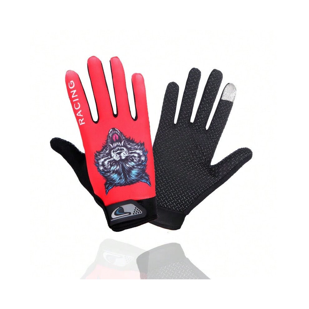 (Wolf head red heat transfer) Men's sun protection gloves thin skating silk driving cycling lure fishing leaking two and a half fingers
