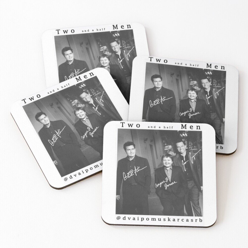 Leather Coasters Two and a Half Men T-shirt Set of 4 / 4 x 4 inch