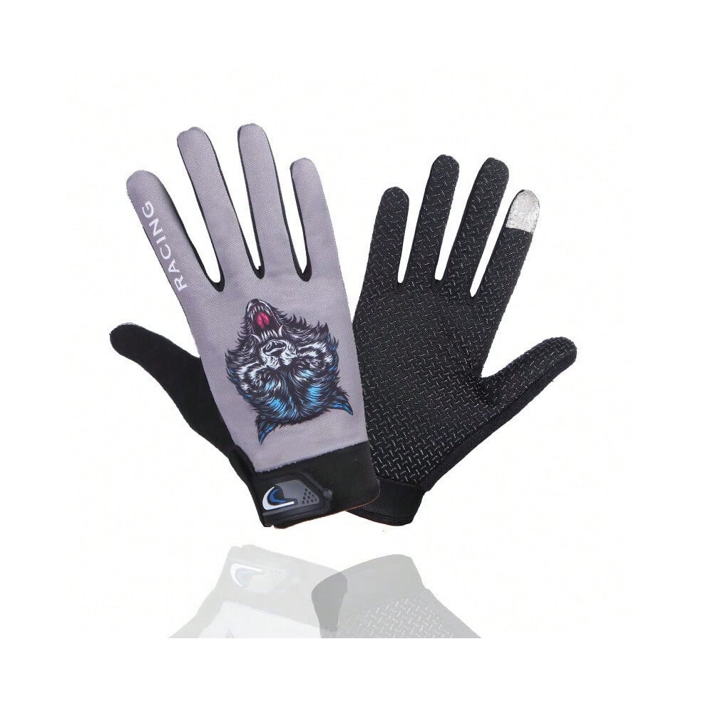 (Wolf head gray heat transfer) Men's sun protection gloves thin skating silk driving cycling lure fishing leaking two and a half fingers