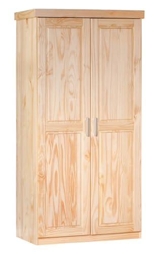 Dmora - Two-door wardrobe in solid pine with natural finish, oak color, 95 x 190 x 55 cm.