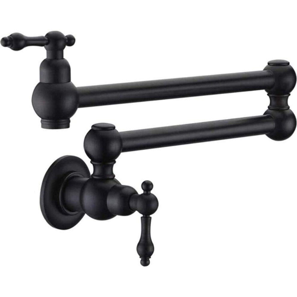 LYGSWDB Brass Wall-Mounted Kitchen Faucet, Double Handle Cold & Hot Water Mixer, Foldable, Two-Hole Sink Tap, Stylish Black Finish for Kitchens