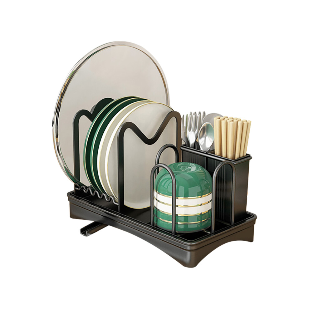 Two-tier Metal Dish Drainer, Multi-purpose Silicone Drying Mat, Screwless Installation, Abrasion Resistant, Practical for Small Kitchens (Black)