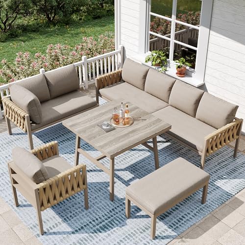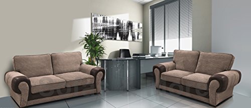 Sofabay Byron Two Tone Sofa Set, 3+2 Seater, Luxury, Grey and Mocha (MOCHA/BROWN, CUSHION FOOTSTOOL)